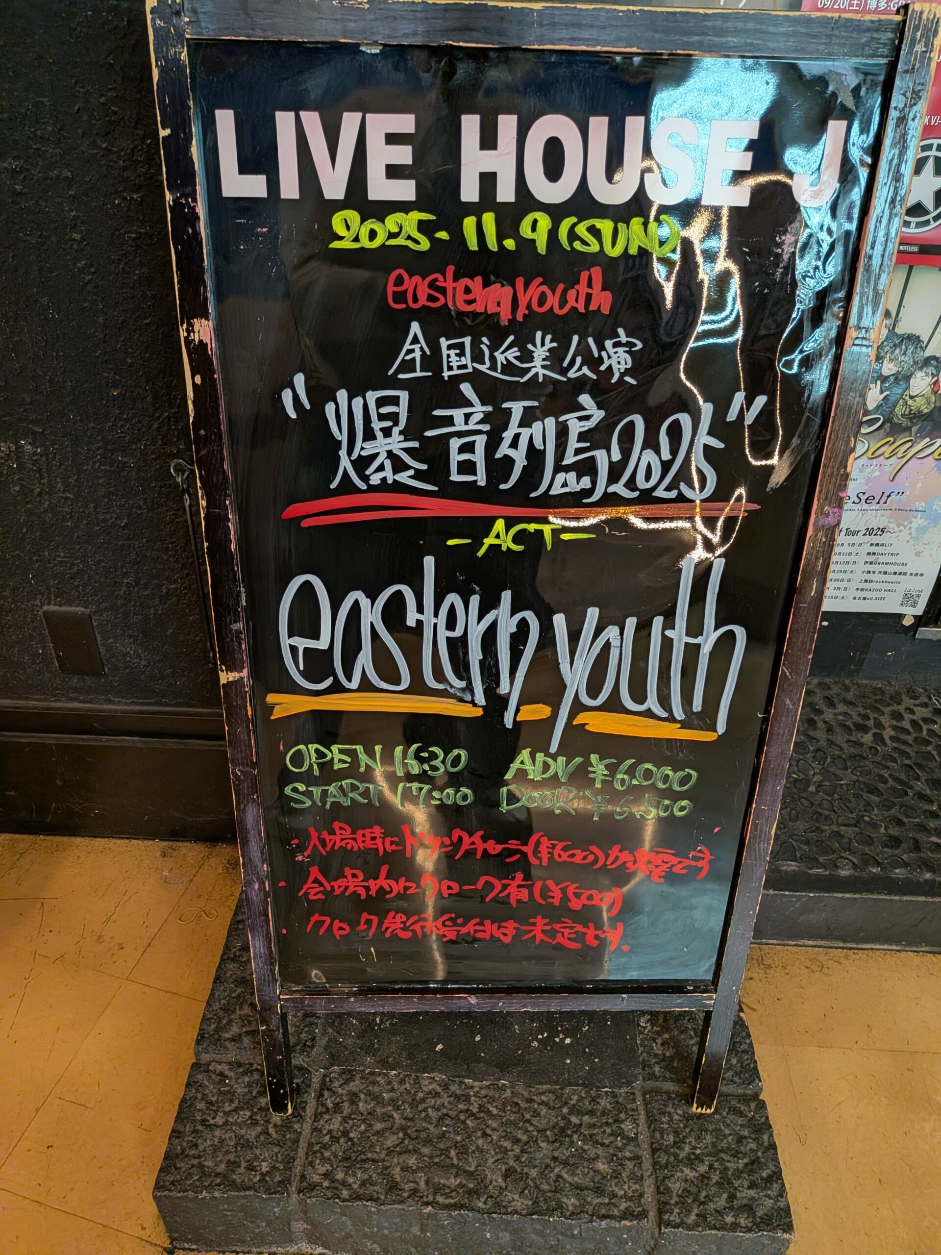 11月9日(日曜日)、LIVE HOUSE J(長野市)、イースタンユース(1988年結成の3人組パンクバンド)